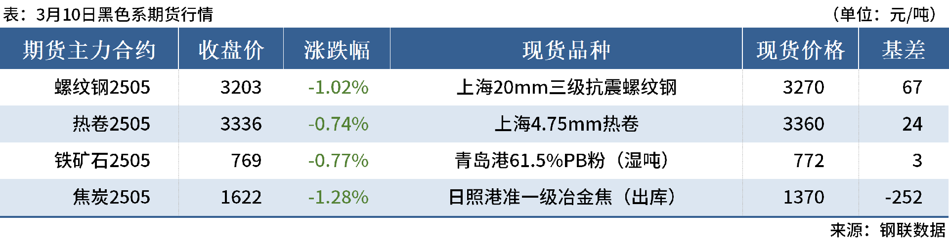 ◎3月10日,全國主港鐵礦石成交67.00萬噸,環(huán)比減9.8%;237家主流貿(mào)易商建筑鋼材成交8.89萬噸,環(huán)比減1.3%。